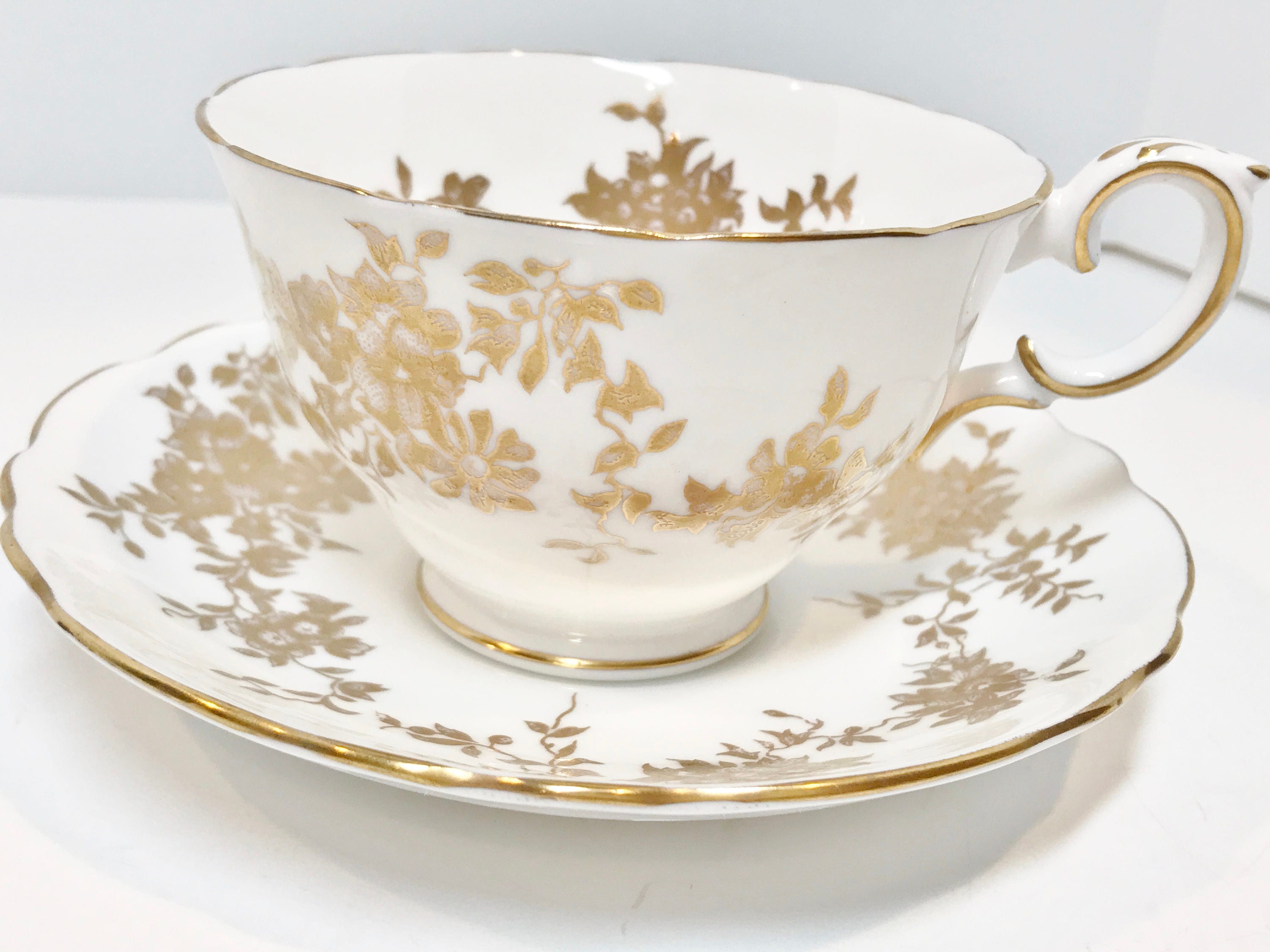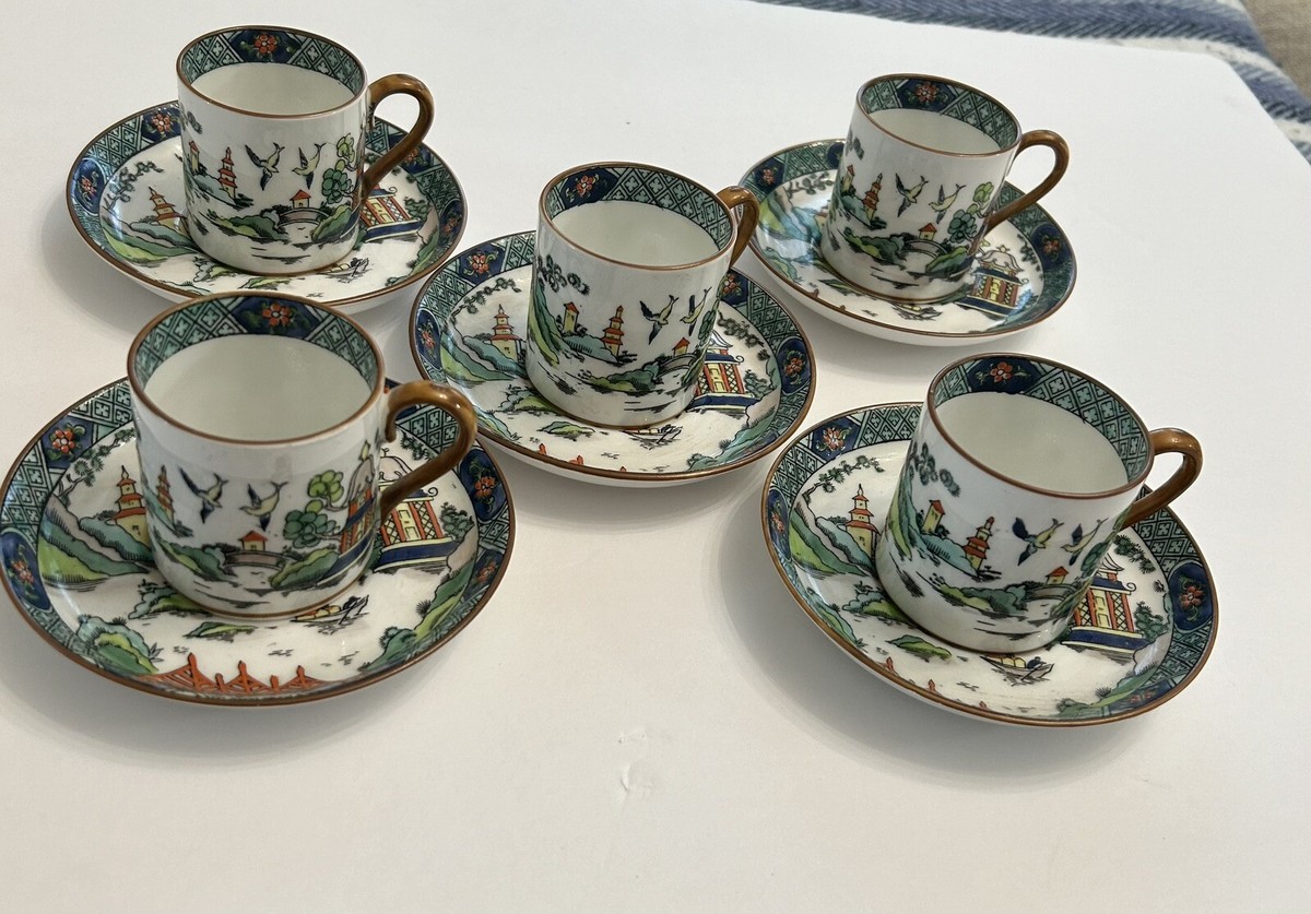 CROWN STAFFORDSHIRE カップ&ソーサー2客 Crown Staffordshire Bone China Tea Cup & Saucer Green With
